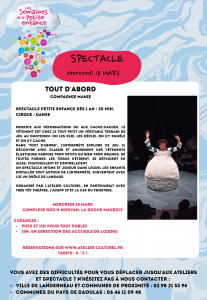 La billetterie pour le spectacle du Mercredi 18 mars : https://www.atelier-culturel.fr/