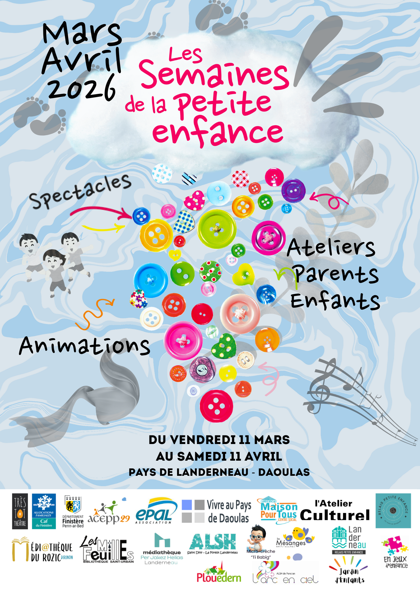 Les Semaines de la Petite Enfance ont lieu sur le Pays de Landerneau-Daoulas du Vendredi 11 MARS au Samedi 11 AVRIL 2026.